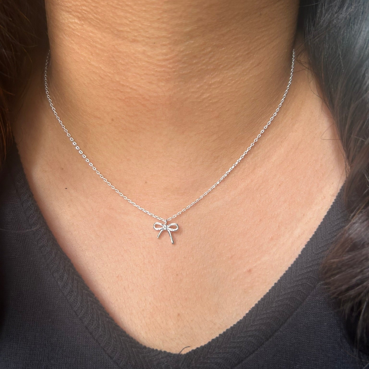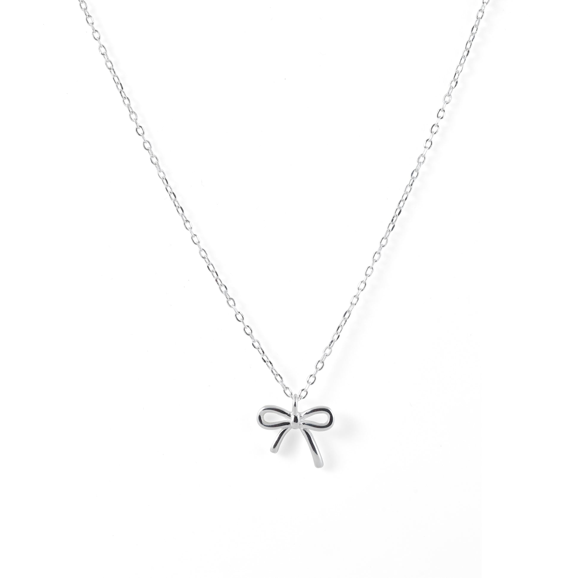 Add a touch of feminine grace to your style with the Bow Necklace. This elegant piece features a finely crafted 925 sterling silver chain that gracefully suspends a charming, simple bow pendant.