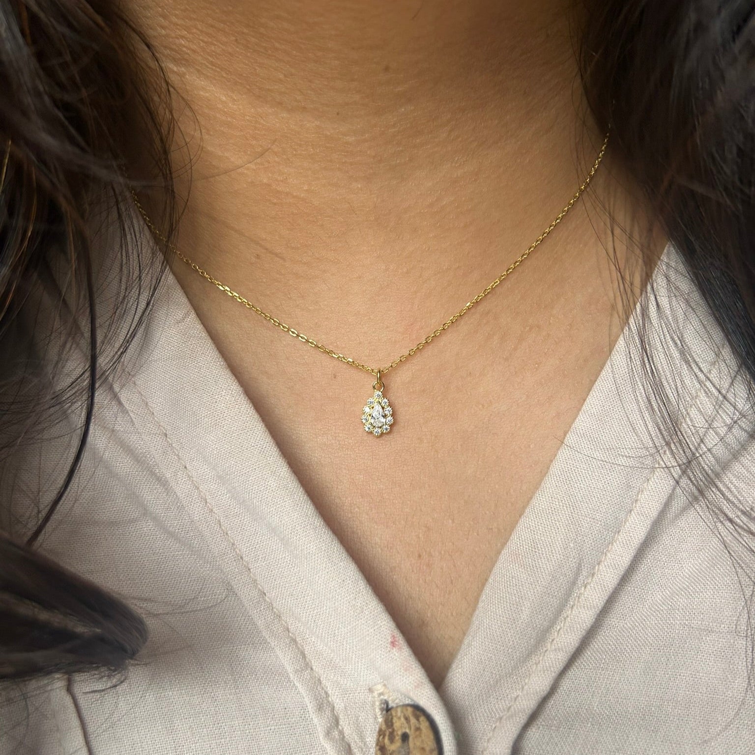 Expertly crafted with a gold-plated finish and suspended from a simple, elegant chain, the Eira necklace is perfect for adding a touch of sophisticated sparkle to your everyday life, or for those special occasions when you want to feel truly luminous. It's more than just a pendant; it's a statement of grace and individual shine.