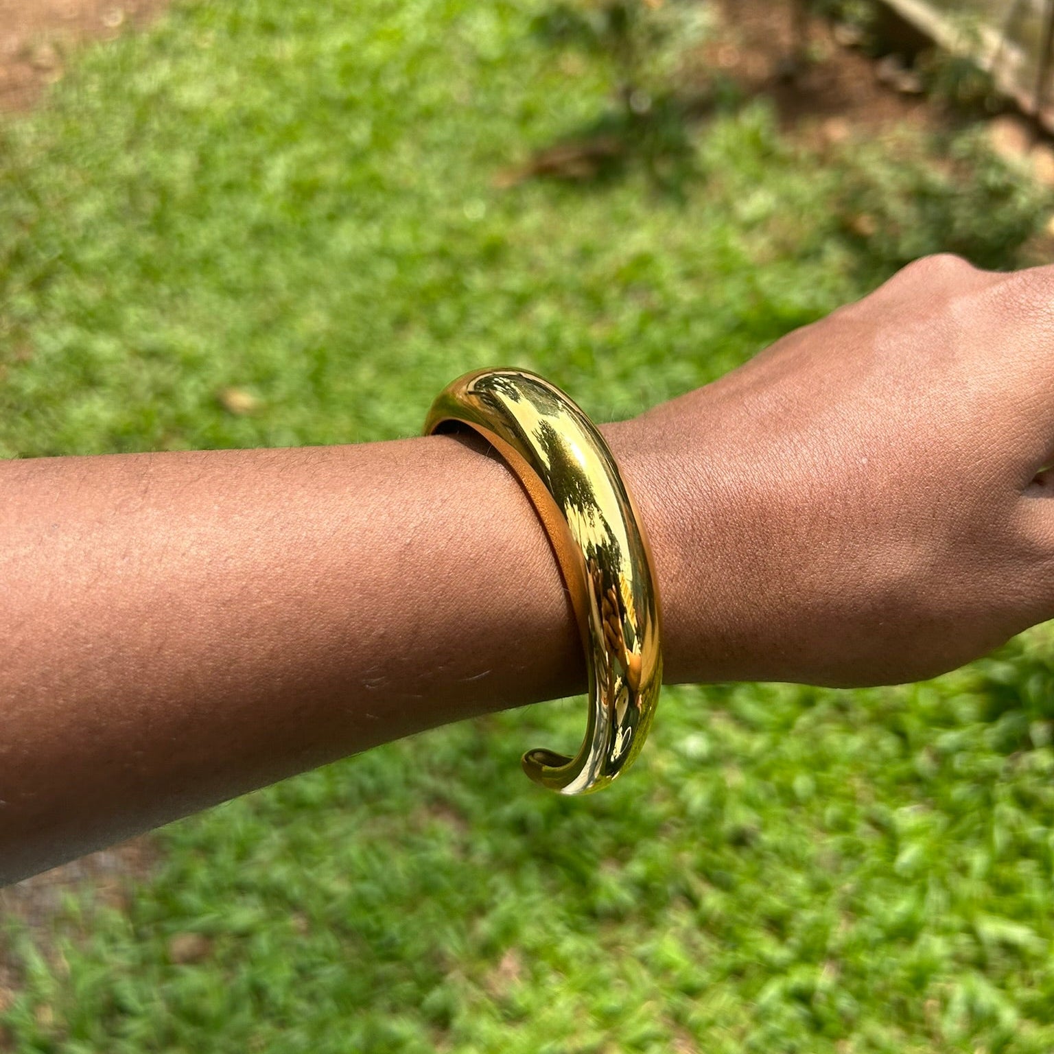 This cuff is crafted from durable stainless steel and generously finished with luxurious 18k gold plating, offering premium weight (53.0g) and lasting quality.
