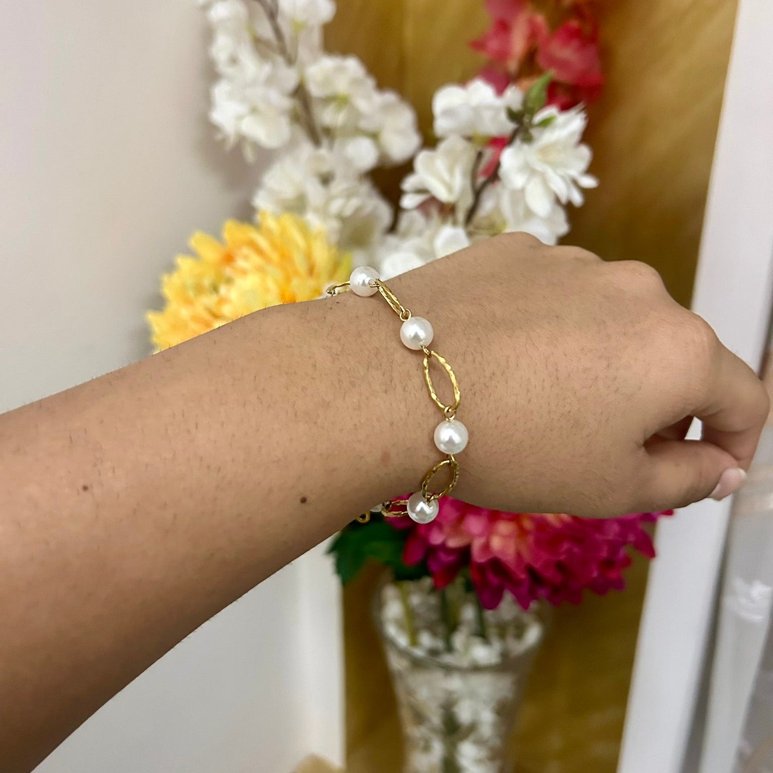 It is reliably anti-tarnish and completely waterproof, ensuring the golden links and white pearls maintain their lustrous beauty through daily wear. This stunning piece of gold plated jewellery is also entirely hypoallergenic, guaranteeing comfortable, carefree wear.