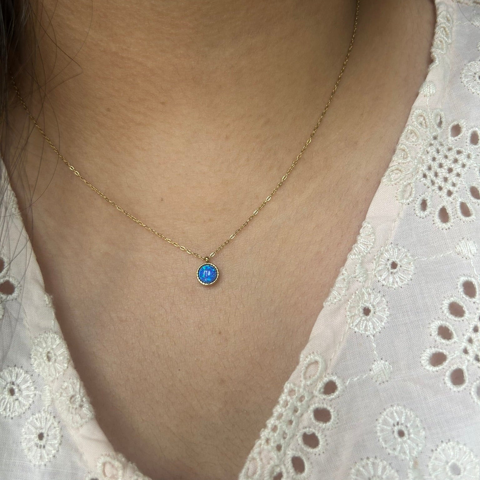Add a touch of vibrant, ethereal colour to your look with the delicate Glow Necklace. This minimalist piece features a fine gold chain with a single, bezel-set circular pendant that truly glows.