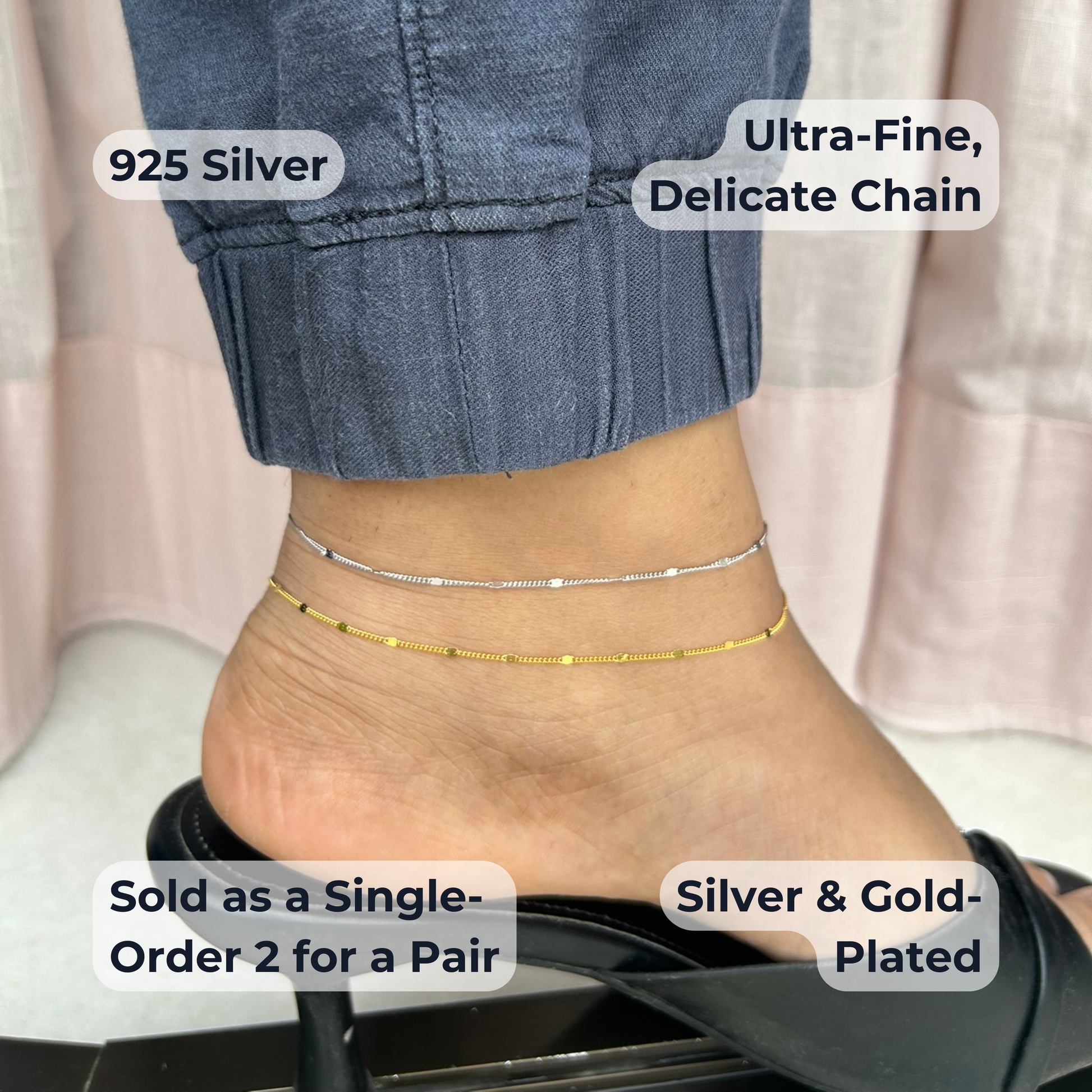 Available in both radiant sterling silver and luxurious 18k gold, the Kira Anklet is the ultimate in minimalist sophistication. It's the perfect everyday piece, proving that the most elegant styles are often the most effortless.