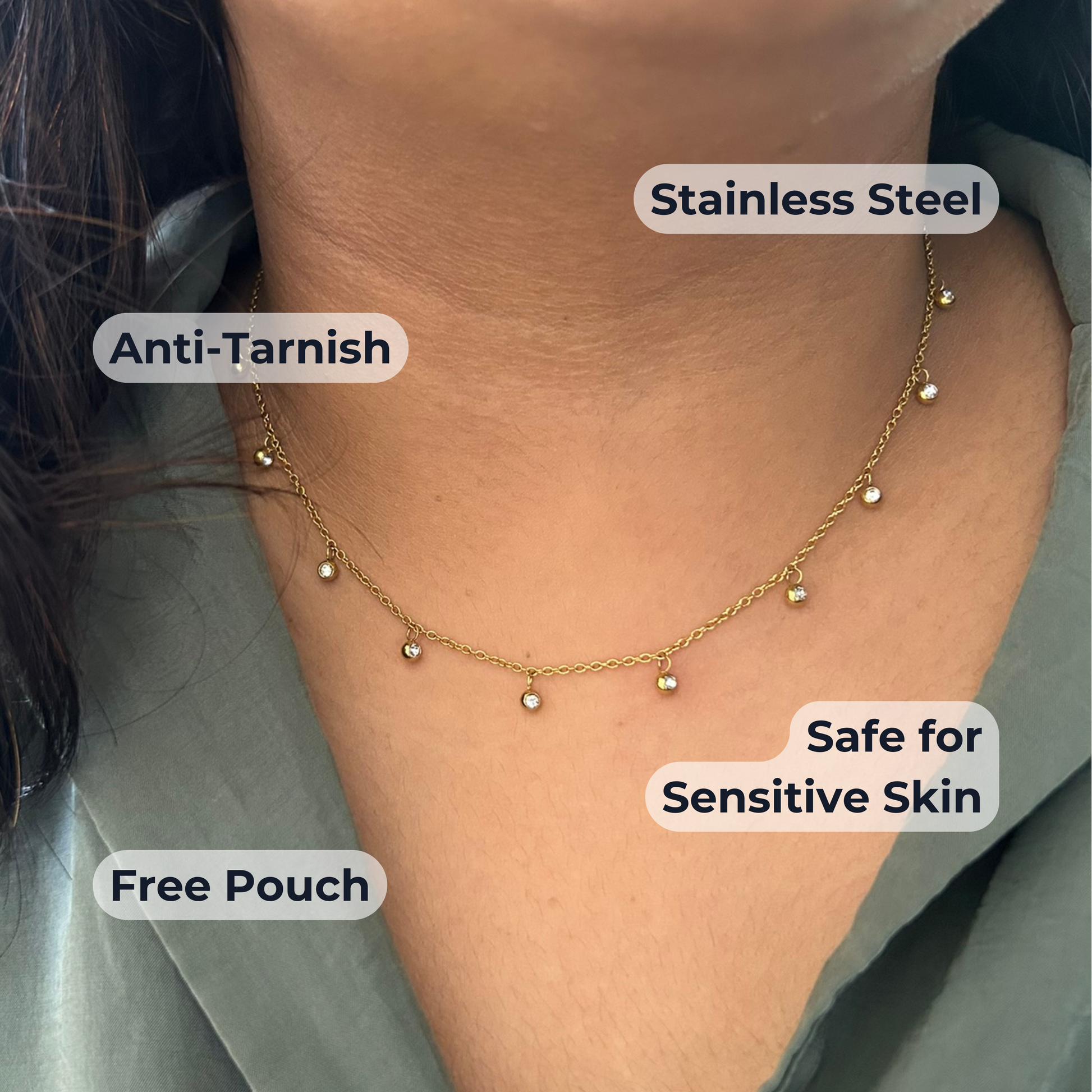 Crafted with 316L Stainless Steel with 18k Gold Plating, it is Waterproof, hypoallergenic, and anti-tarnish for long-lasting wear.