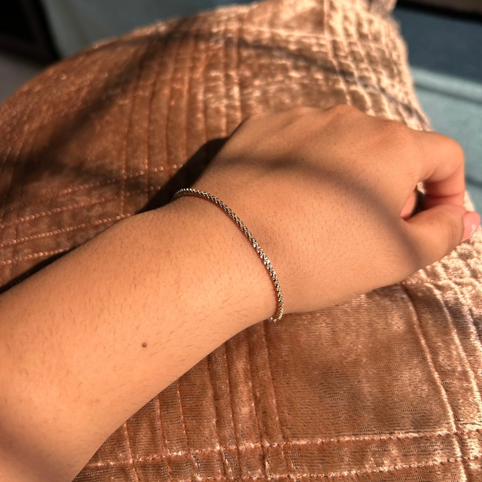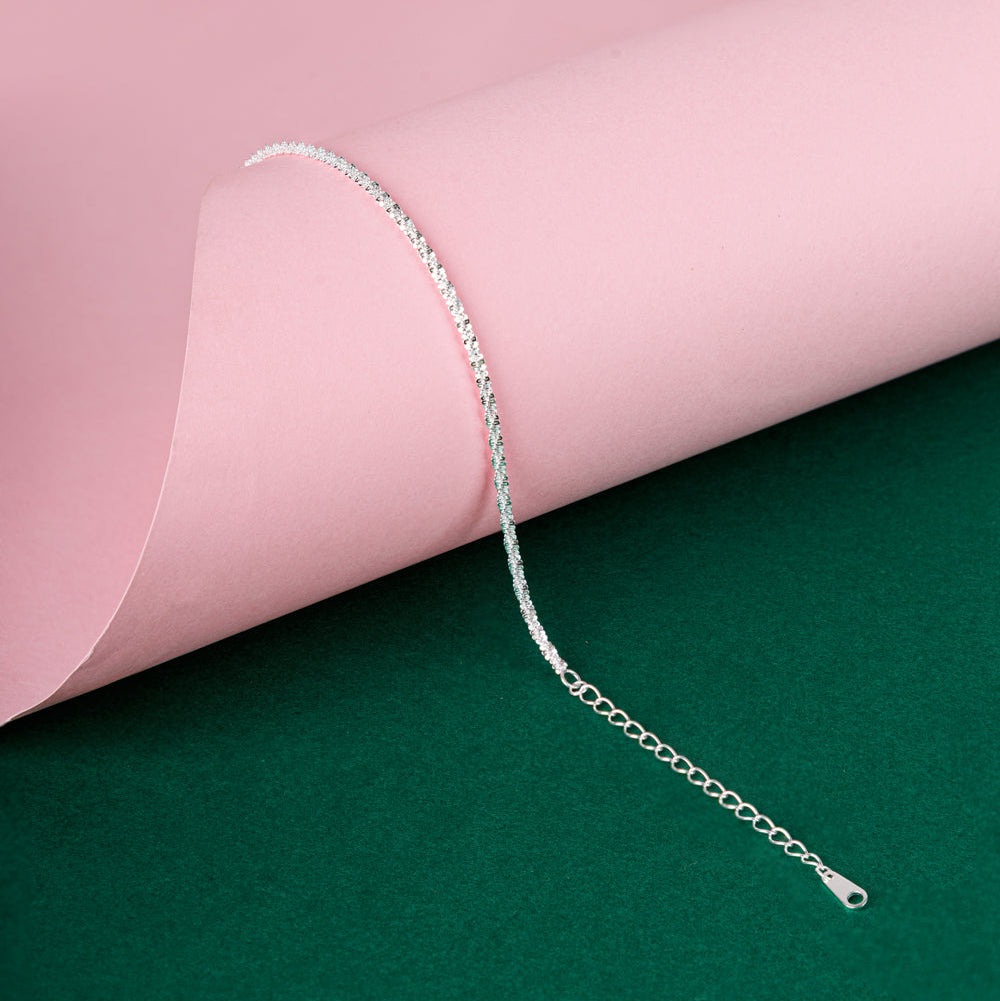 Crafted with the same beautiful, intricate chain design as its matching necklace and ring, this bracelet has a wonderful thickness and presence. Every interwoven loop is designed to catch and reflect light, creating a continuous, brilliant sparkle that adds a rich texture to your wrist.